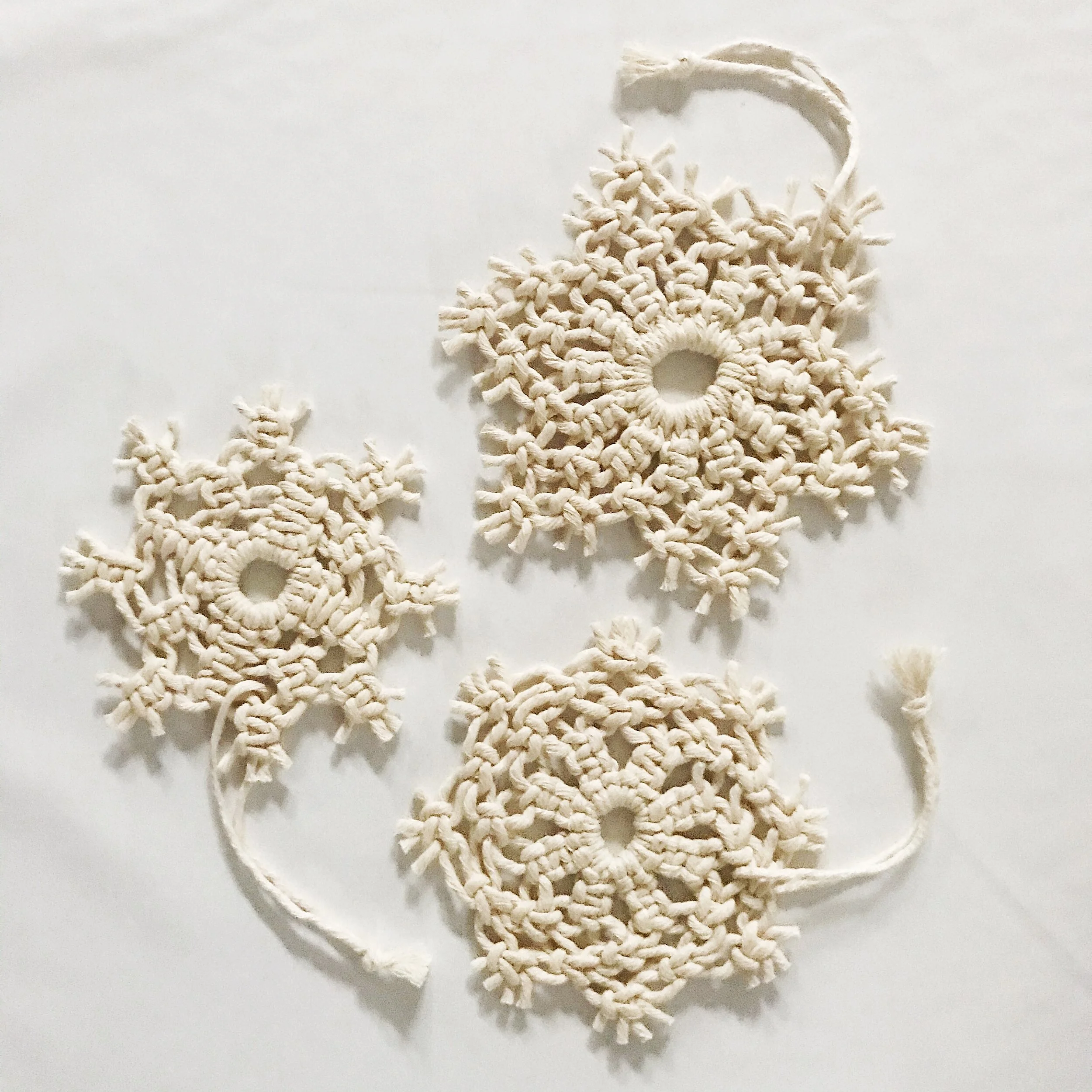 SET OF THREE SNOWFLAKE ORNAMENTS